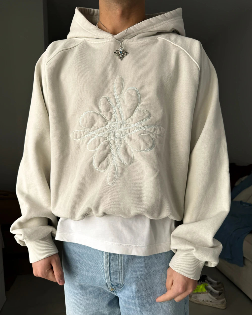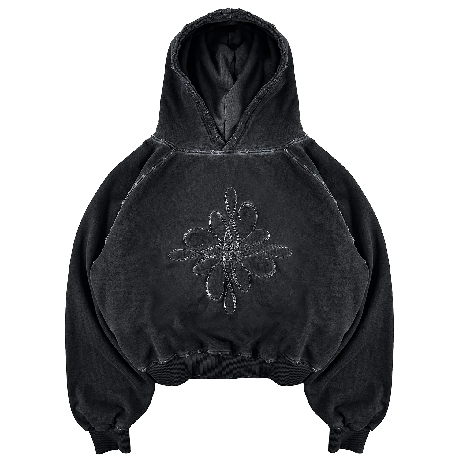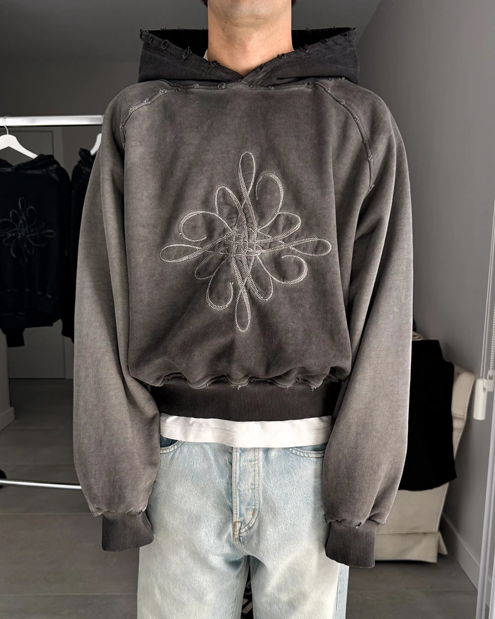 APPLIQUÉ DYED HOODIE BURGUNDY