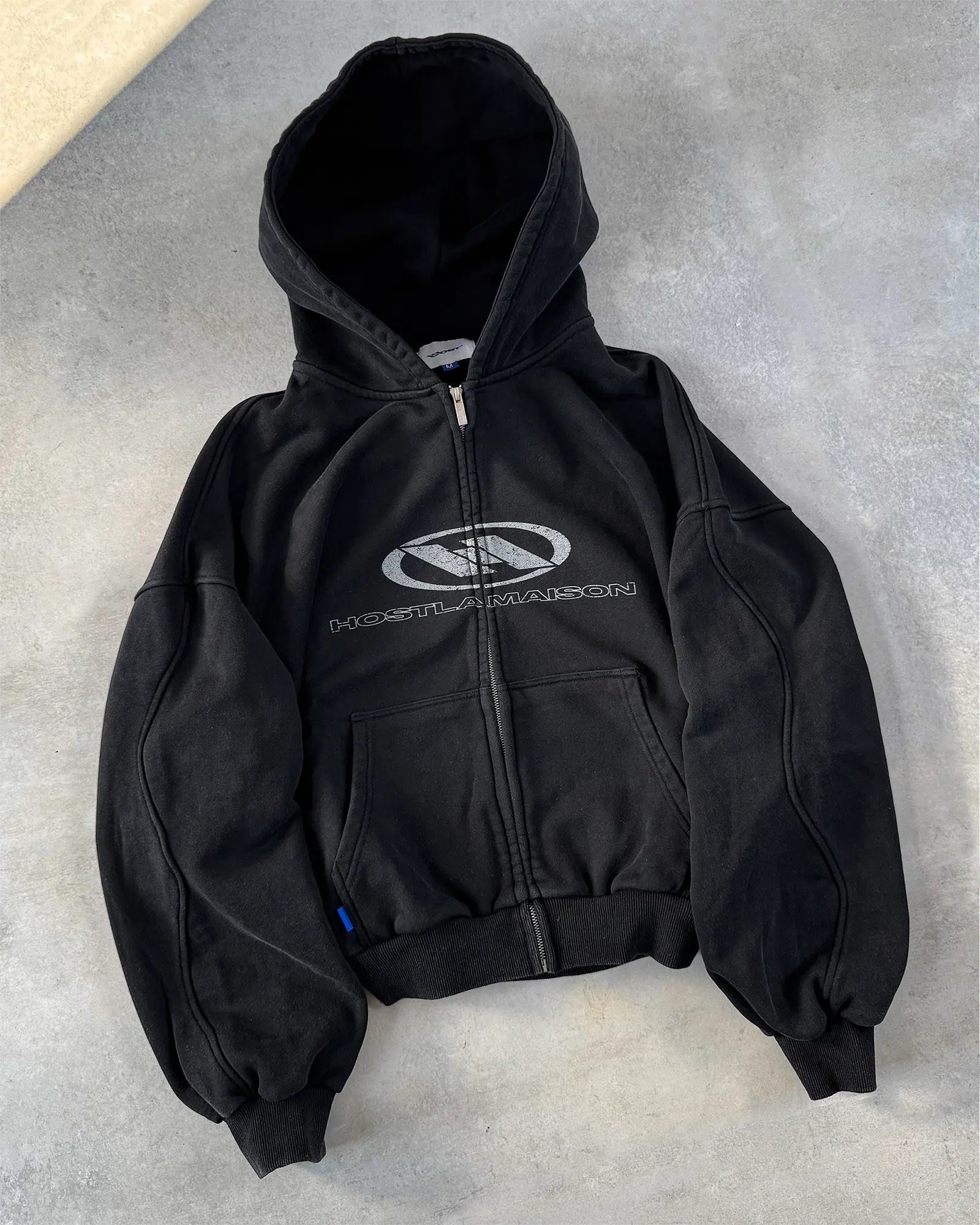 ERODE WAVE ZIPPED HOODIE CHARCOAL