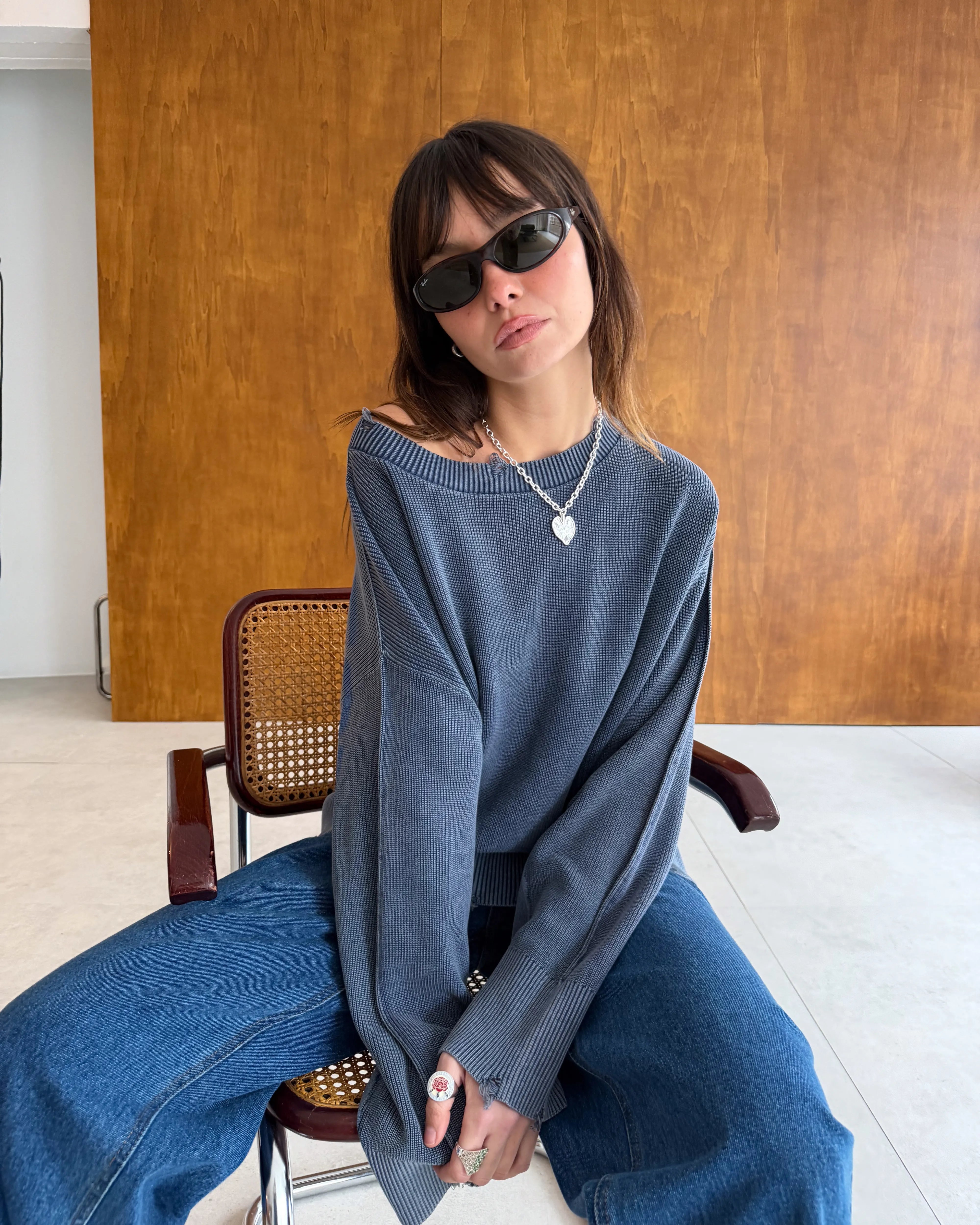 Shady Knit Zip-Up Cardigan Petrol Blue