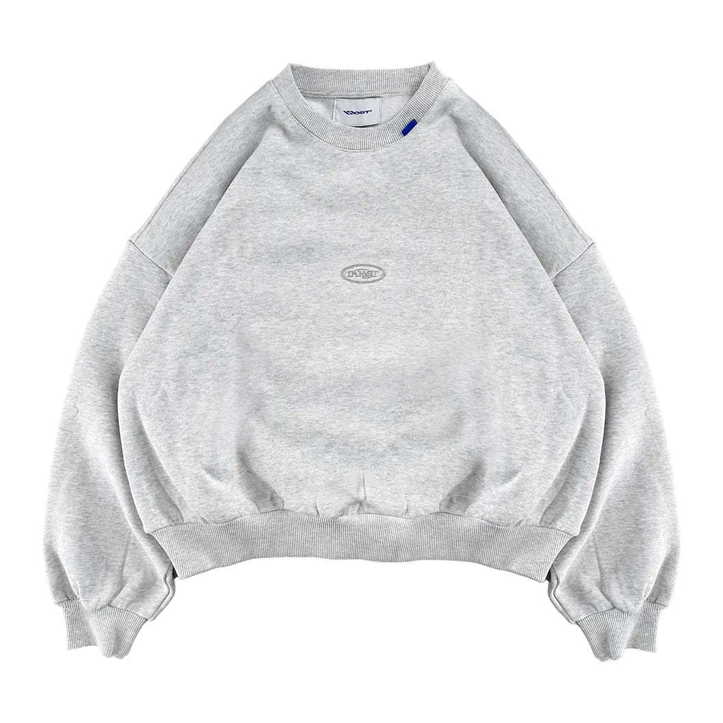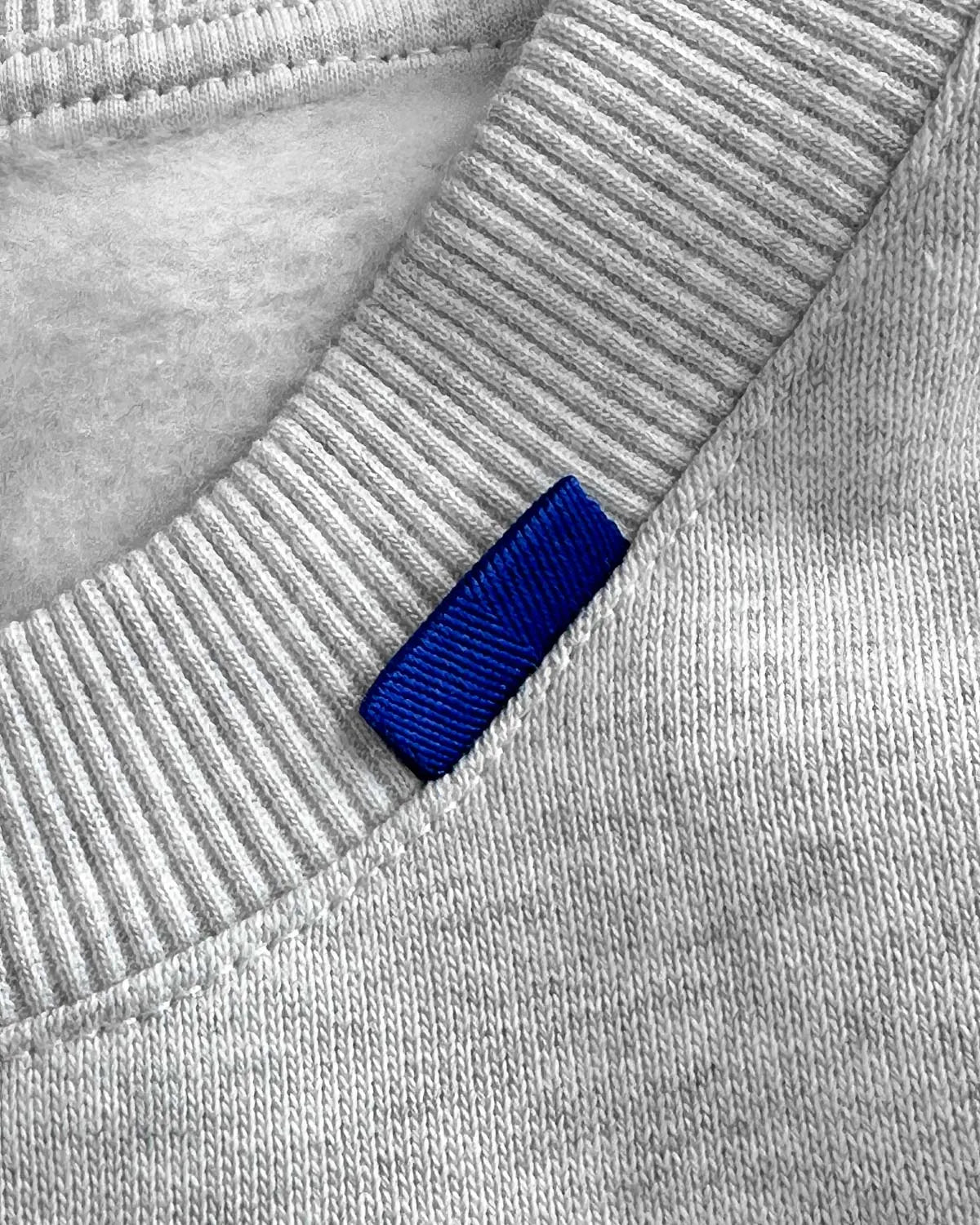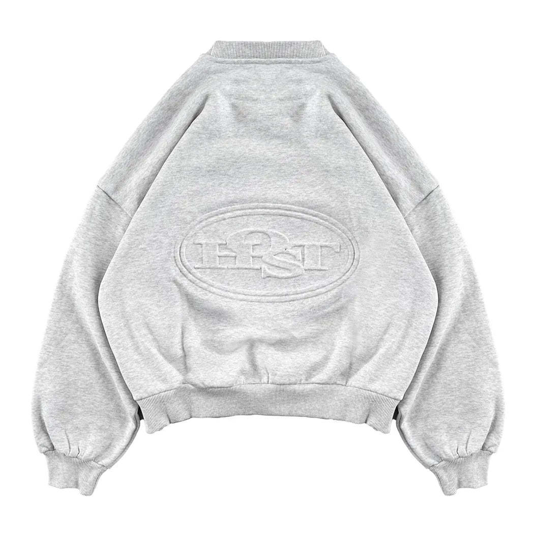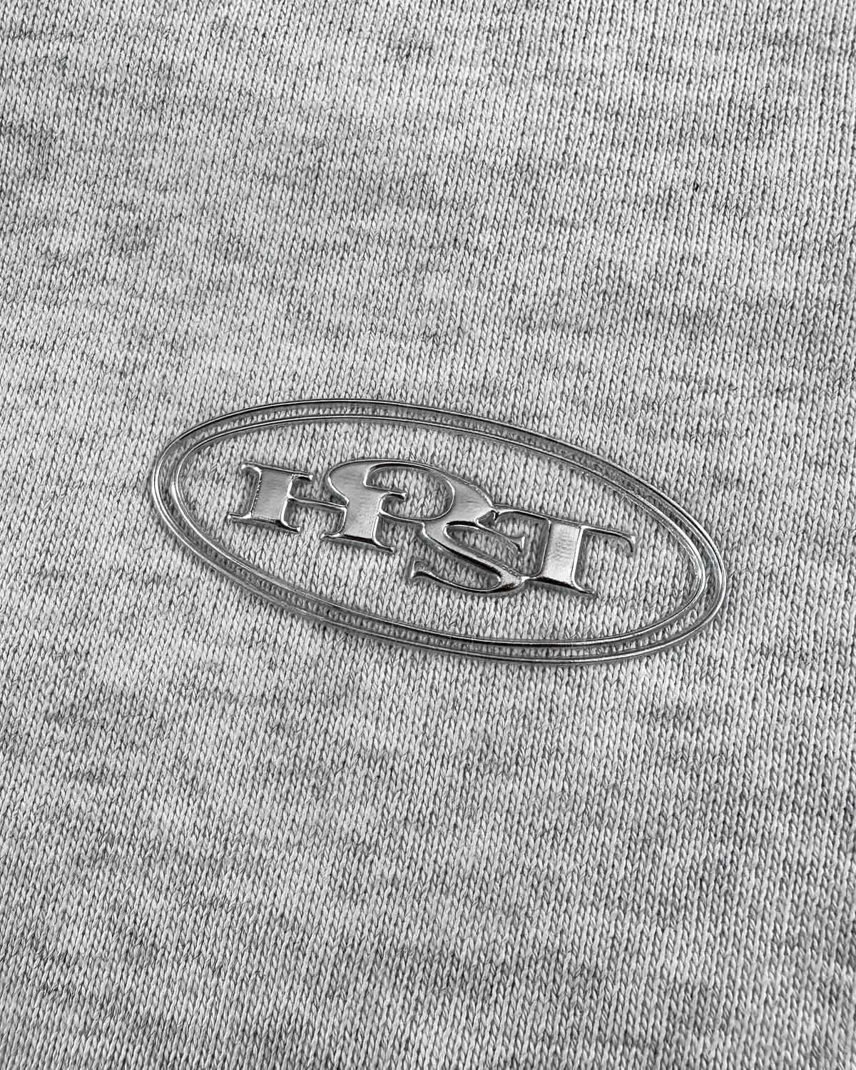 Ash grey crewneck 'HOST' 3D silver finish patch on the front. ©Host corporate color collar label. 3D Embossed logo on the back.