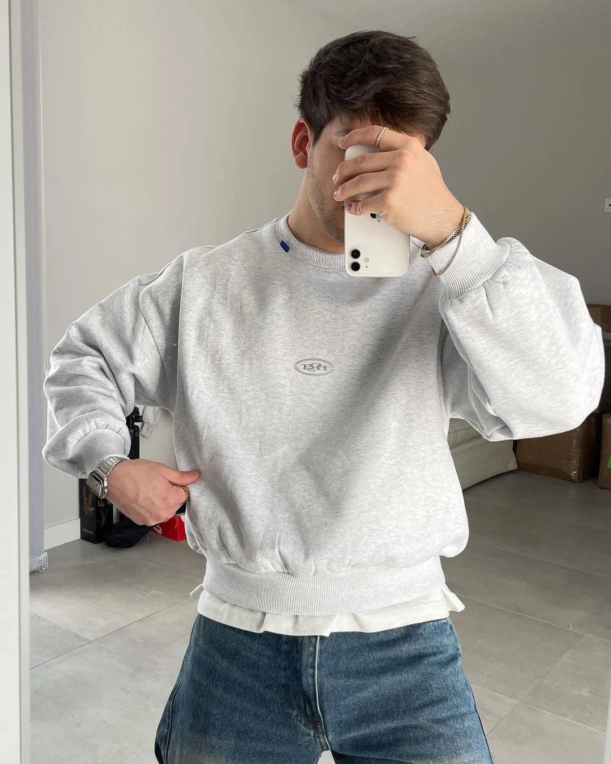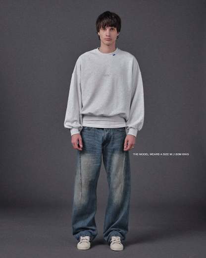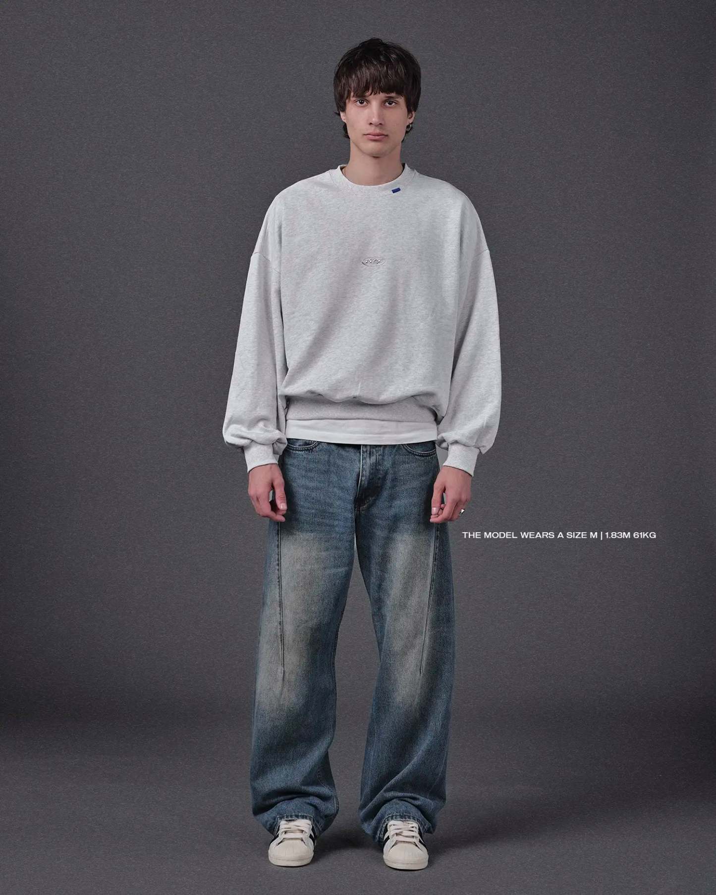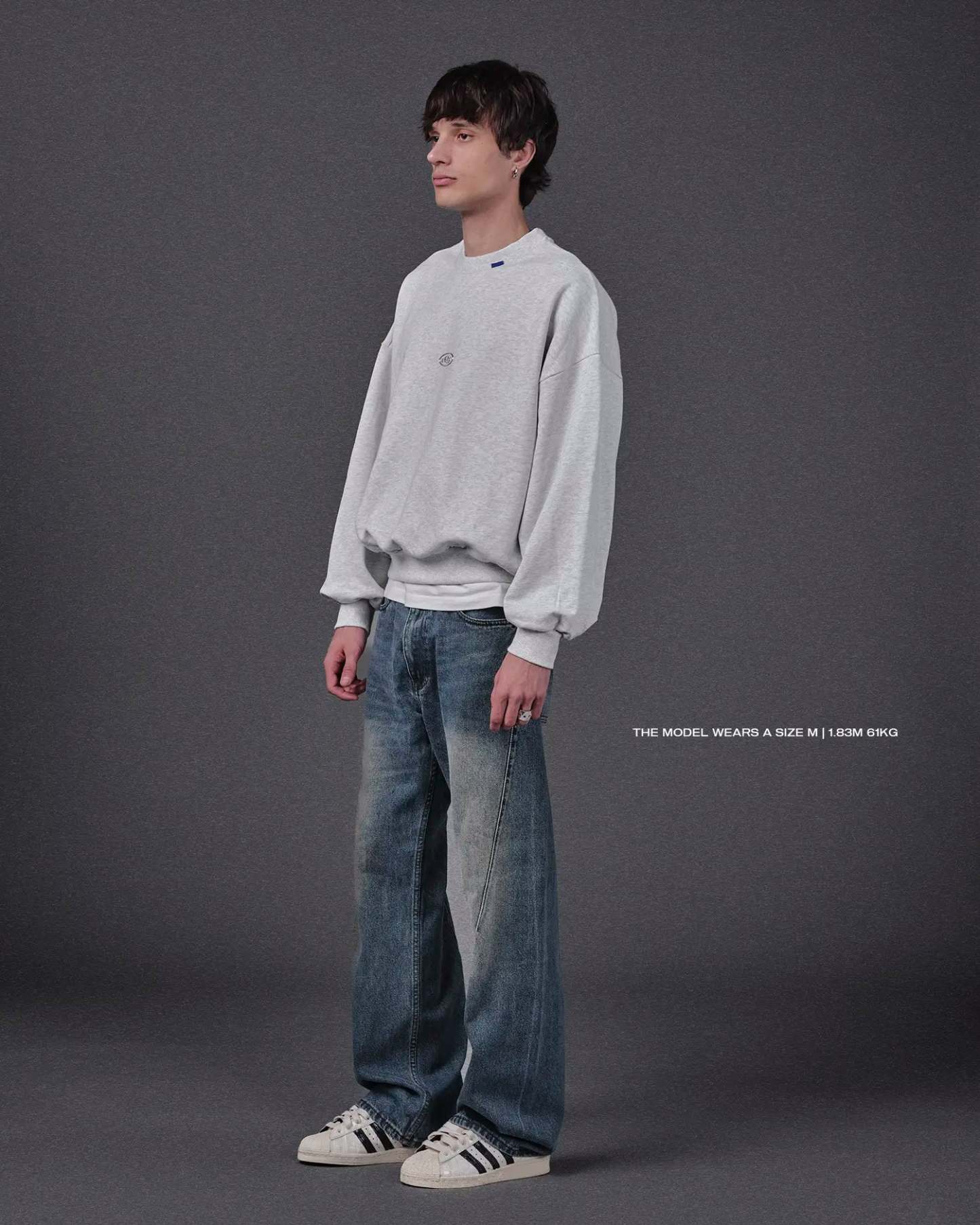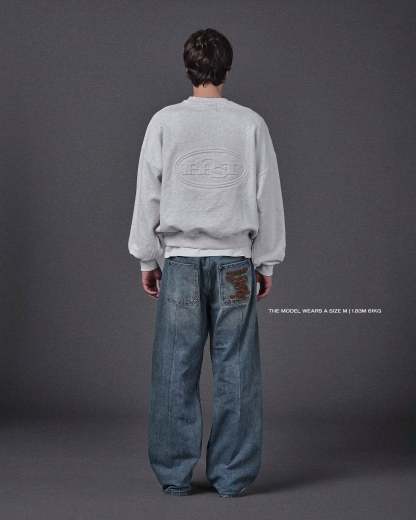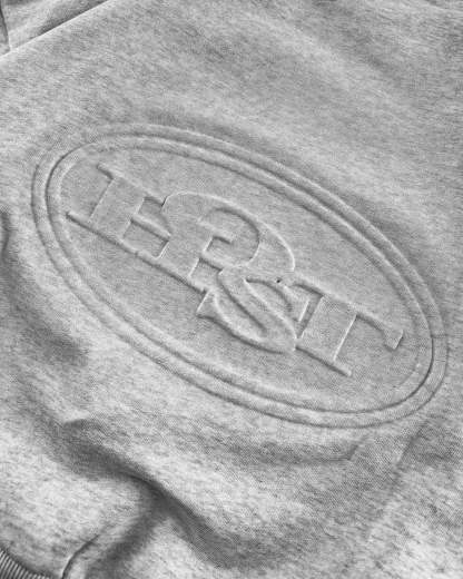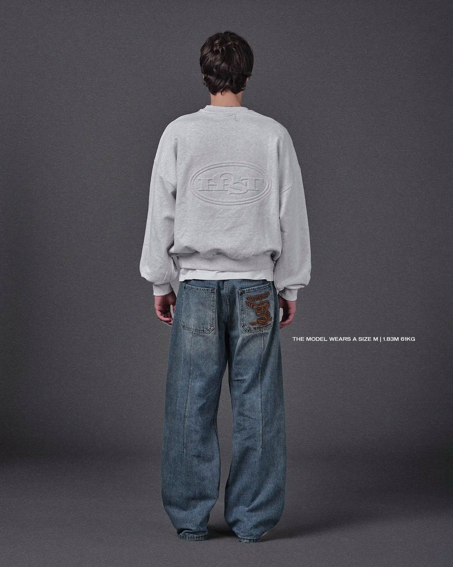 Ash grey crewneck 'HOST' 3D silver finish patch on the front. ©Host corporate color collar label. 3D Embossed logo on the back.