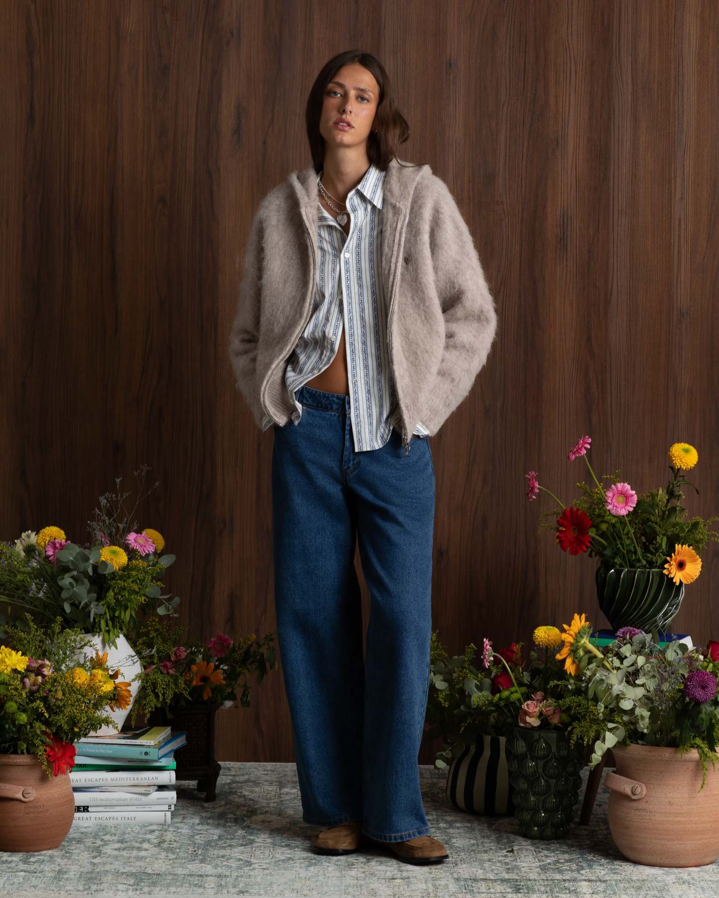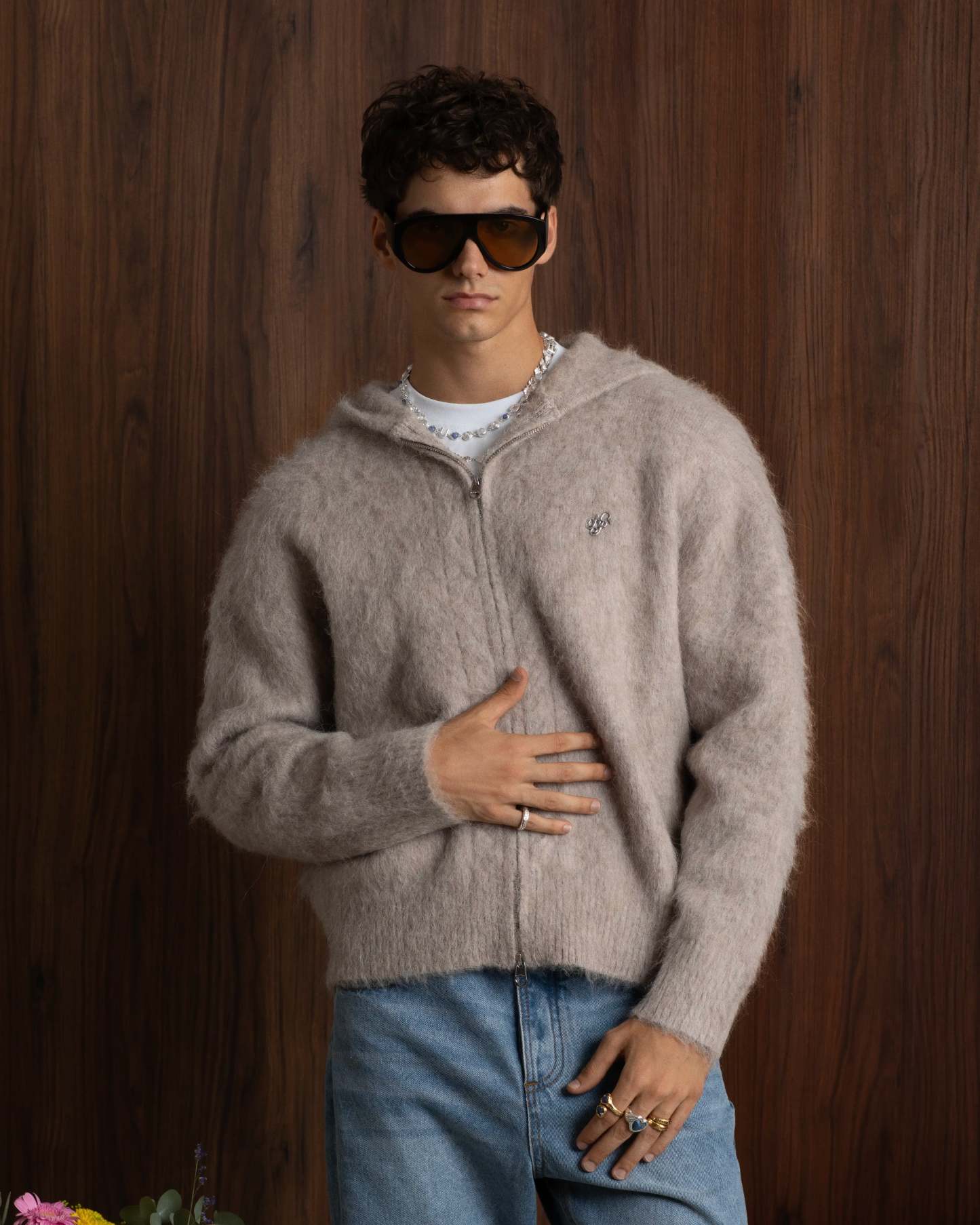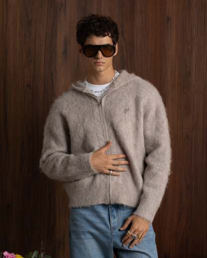 Alpachino Knit Zip-Up Hoodie Beige