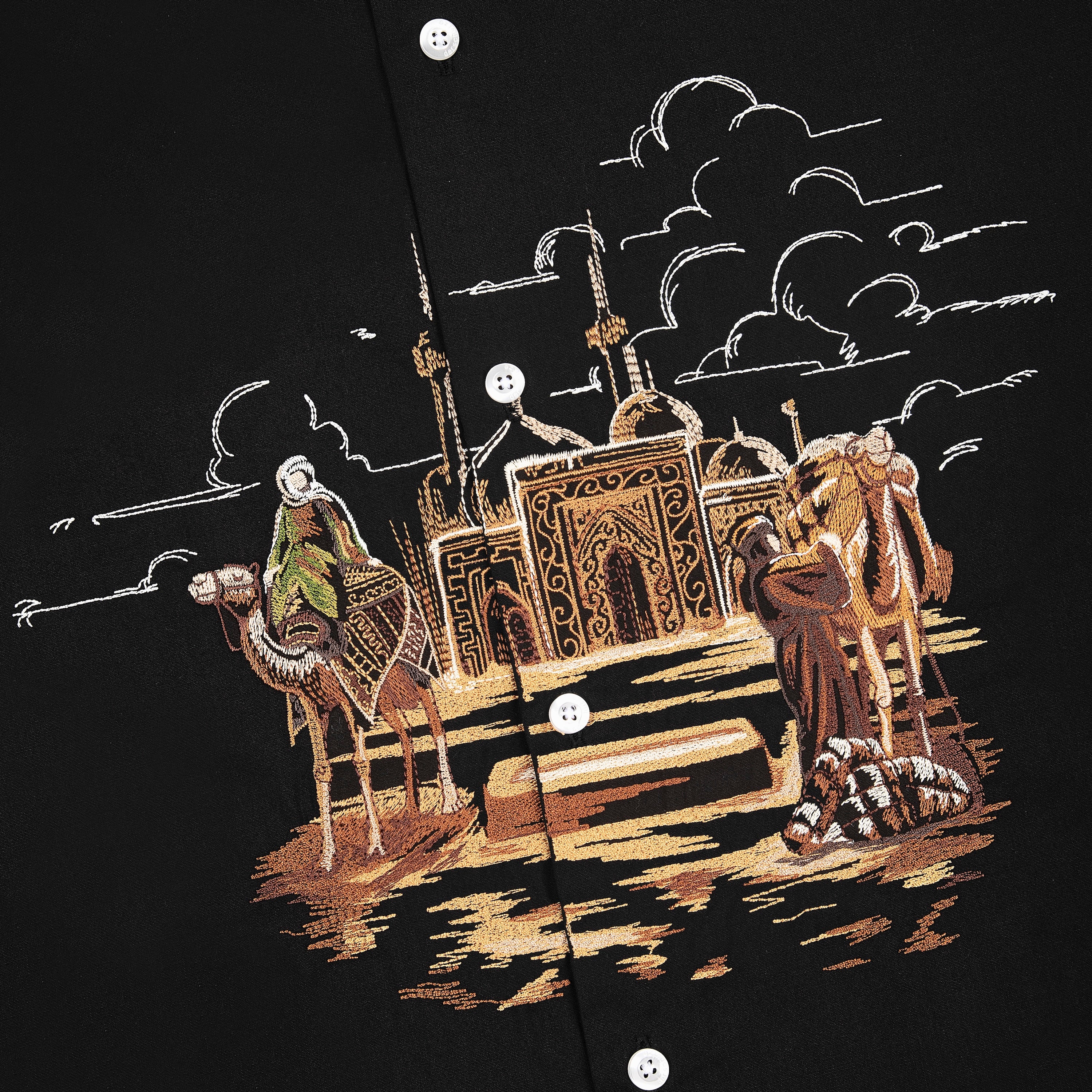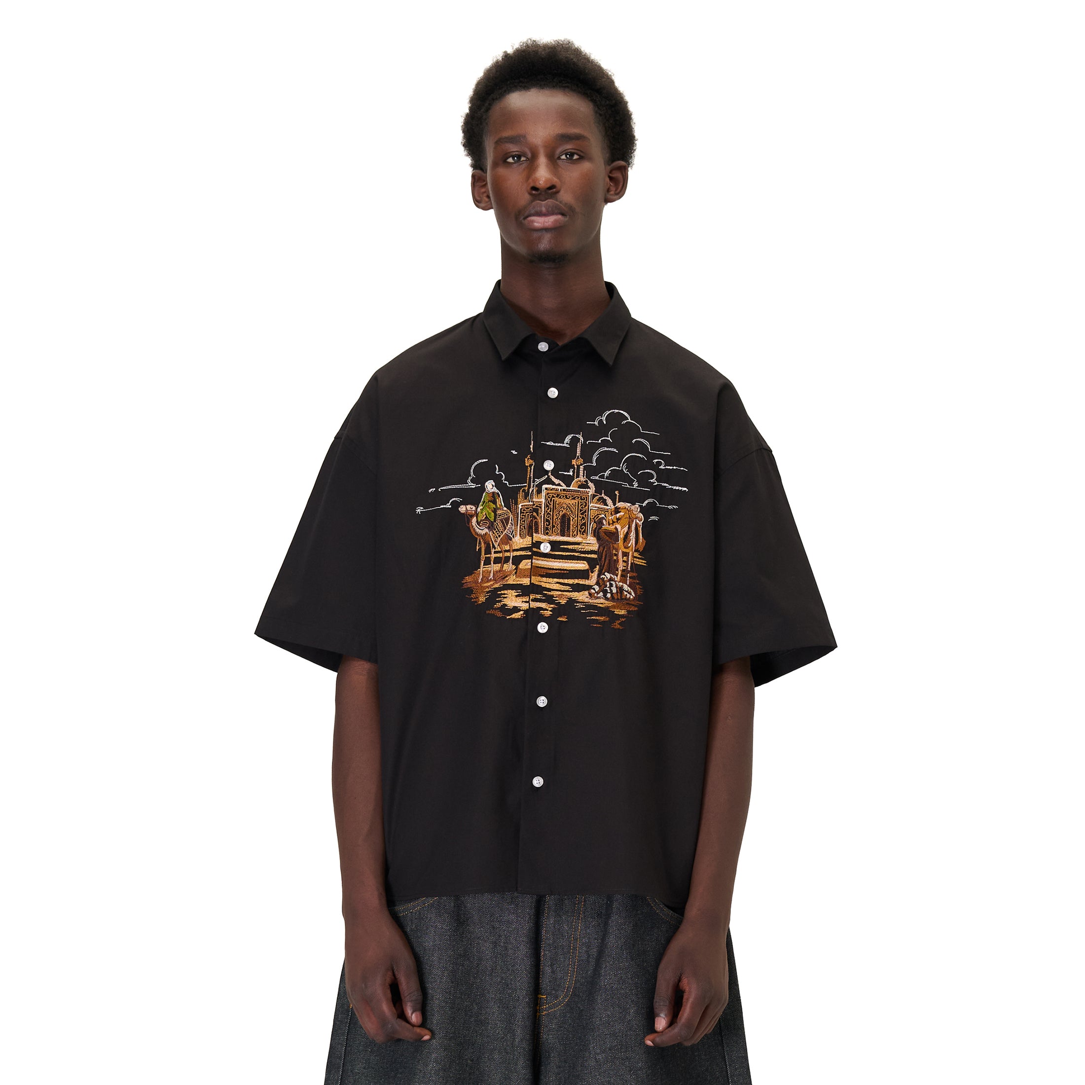 poplin fabric / 100% cotton / embroidery on front / custom buttons / curved hem / relaxed fit / fits true to size