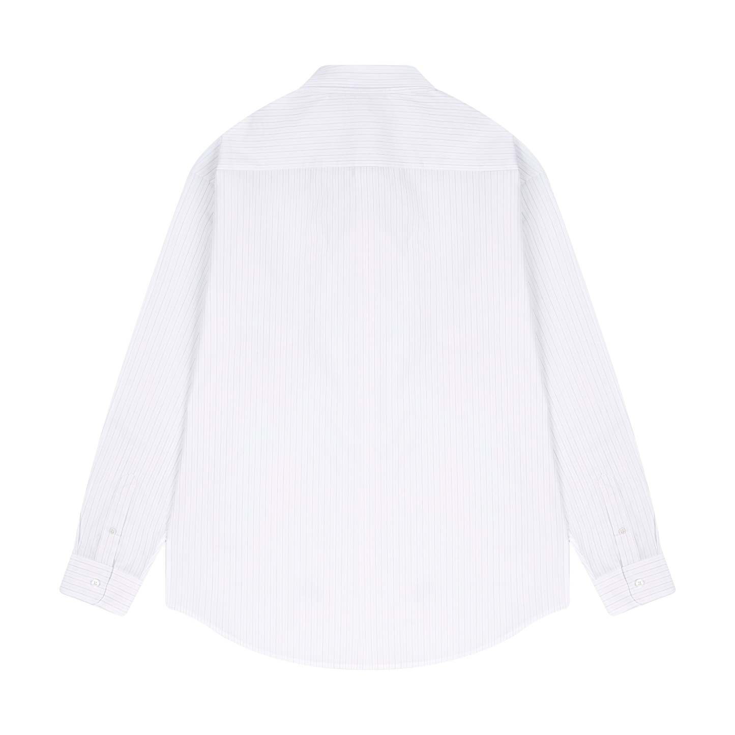 100% cotton / white-grey striped / embroidery on front / custom buttons / curved hem / relaxed fit / fits true to size