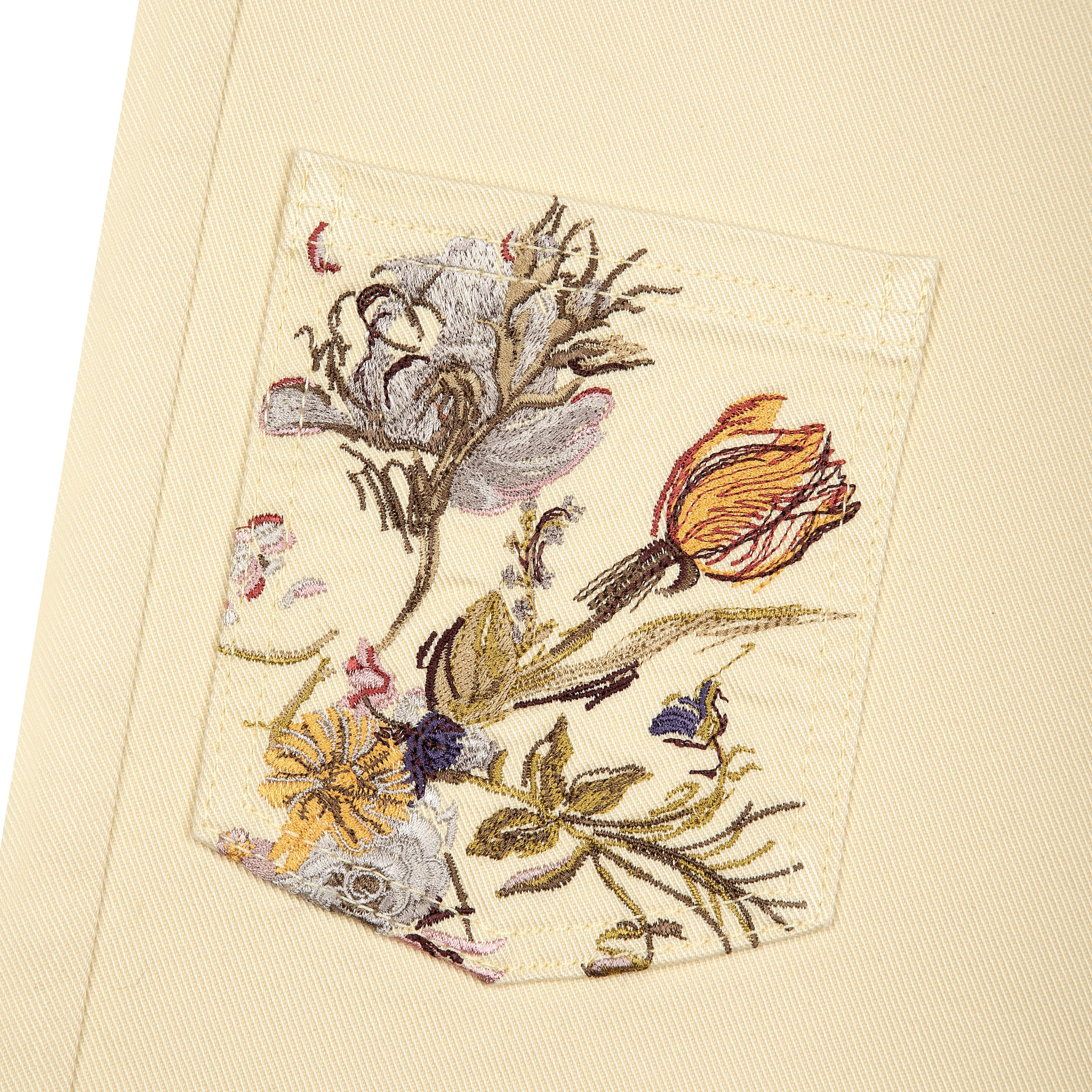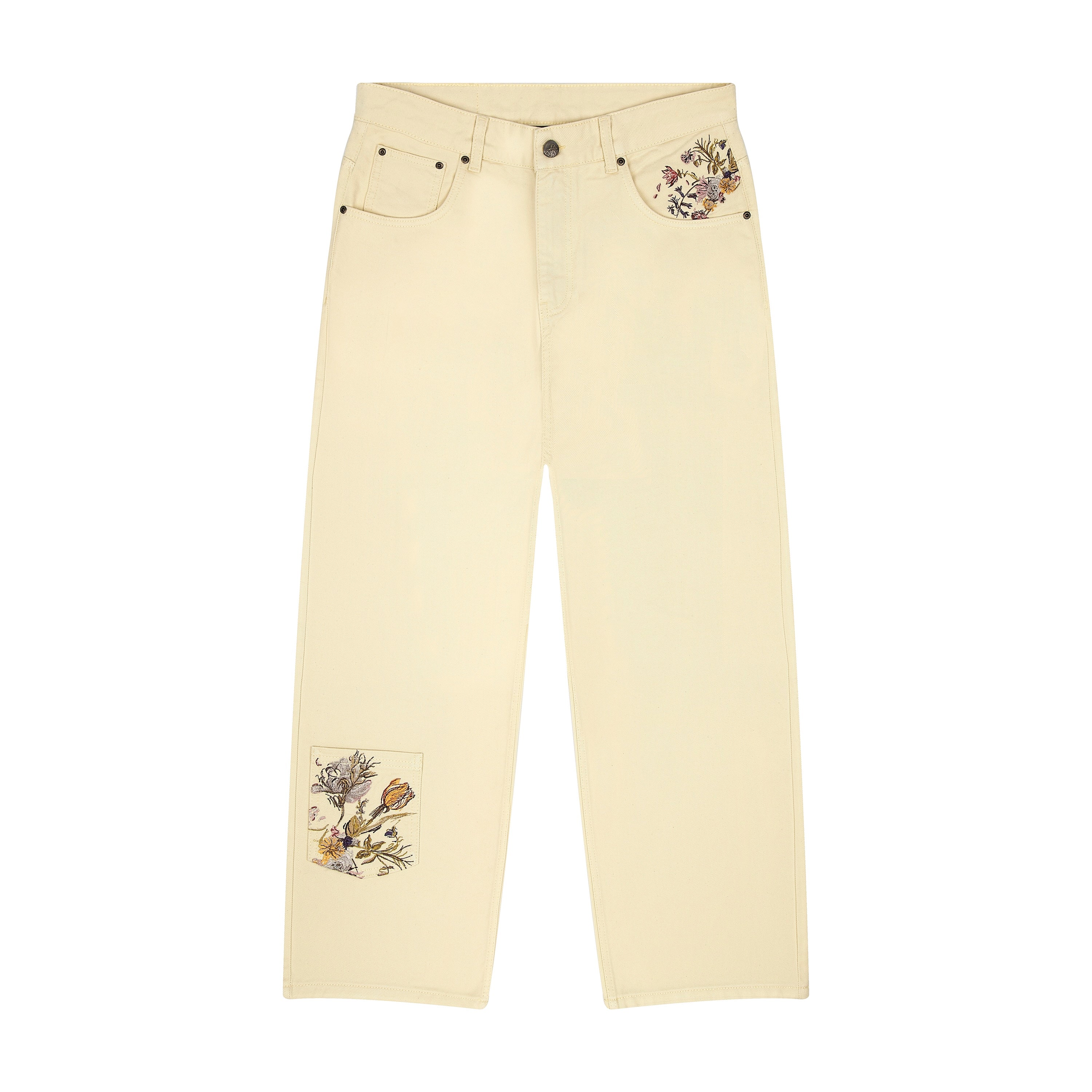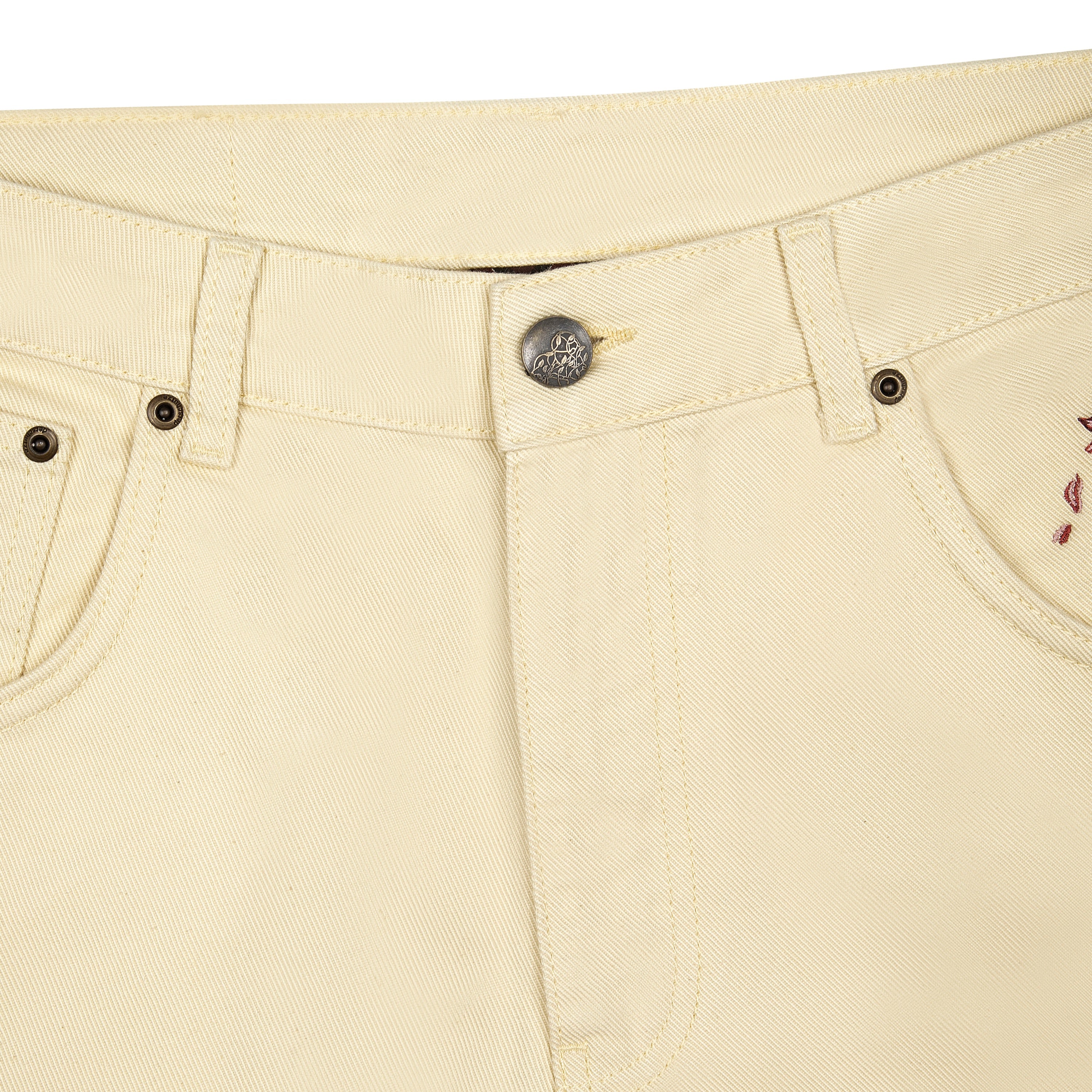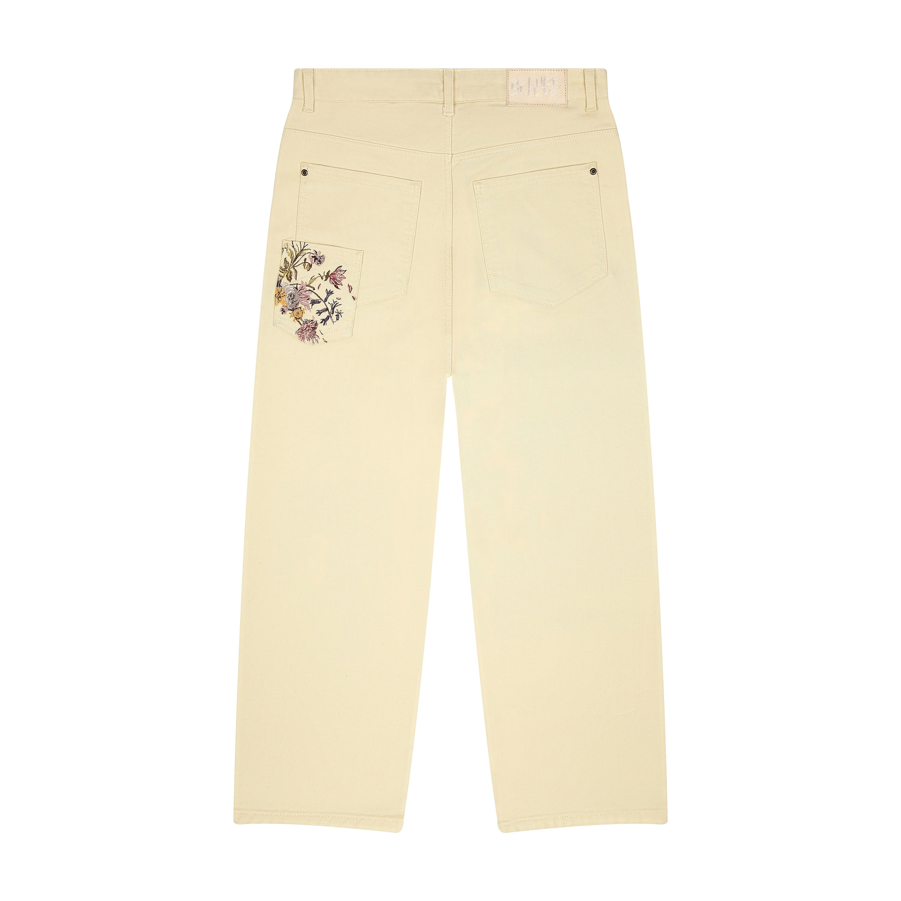 13,5oz denim / 100% cotton / embroidered patch pockets on front and back (also embroidery on front side pocket) / plaid patterned deboss printed leather patch / custom button / baggy fit / fits true to size