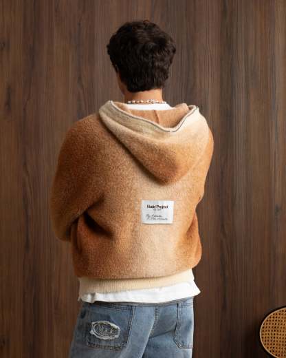 Gradient Knit Zip-Up Hoodie Brown