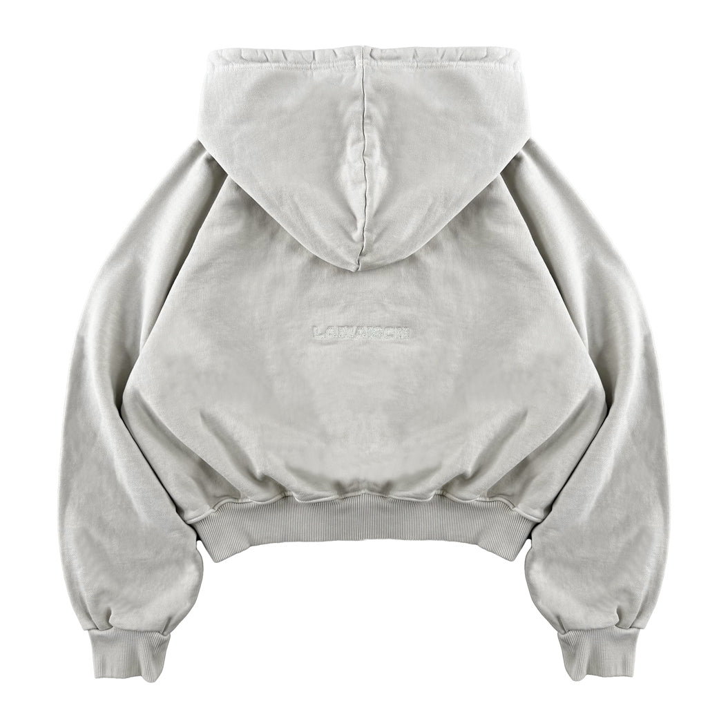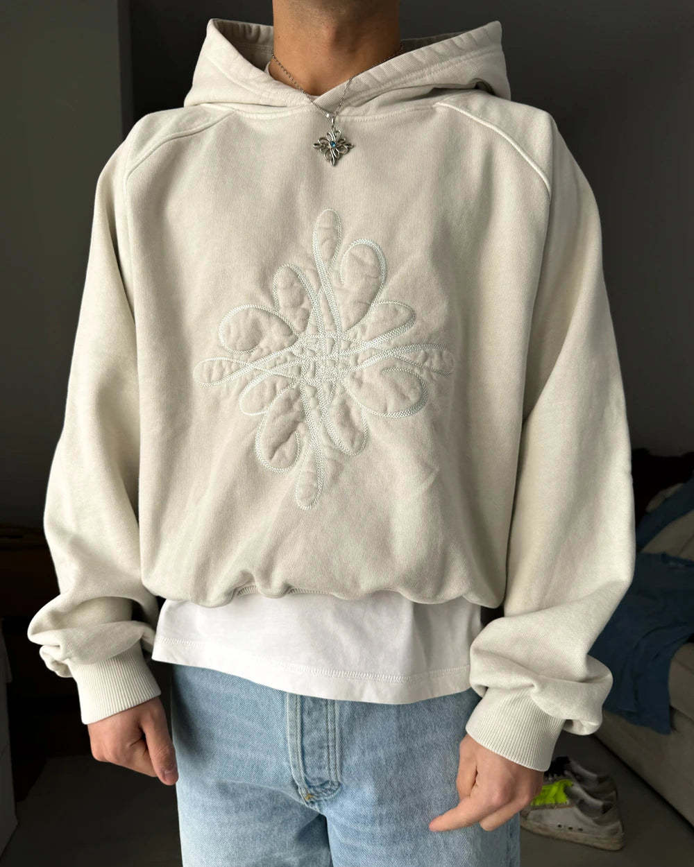 Dyed & washed vintage Sand hoodie 'ICONFLOWER logo' Sand color Chain Embroidered on the front. "LAMAISON" Sand color Chain embroidered on the back.