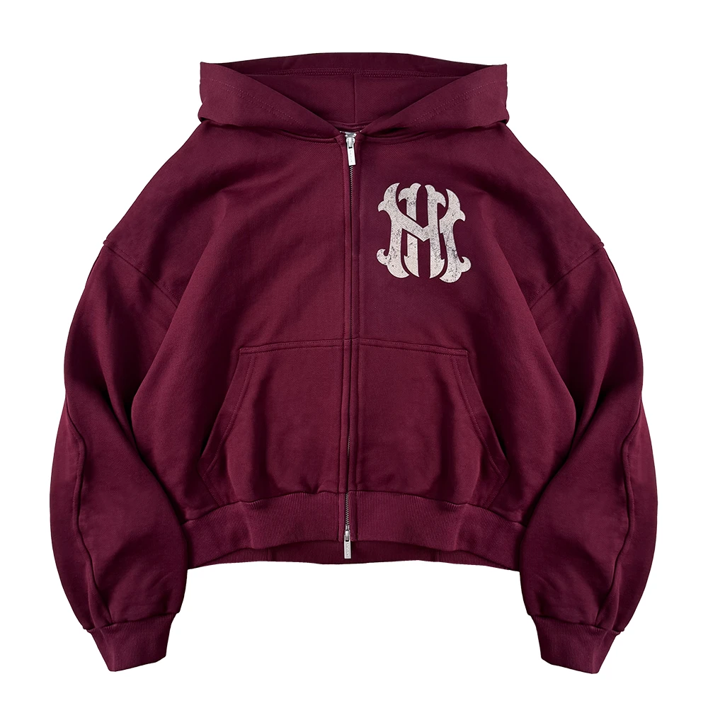 Burgundy heavyweight zip hoodie crafted from 100% cotton, 420GSM.
