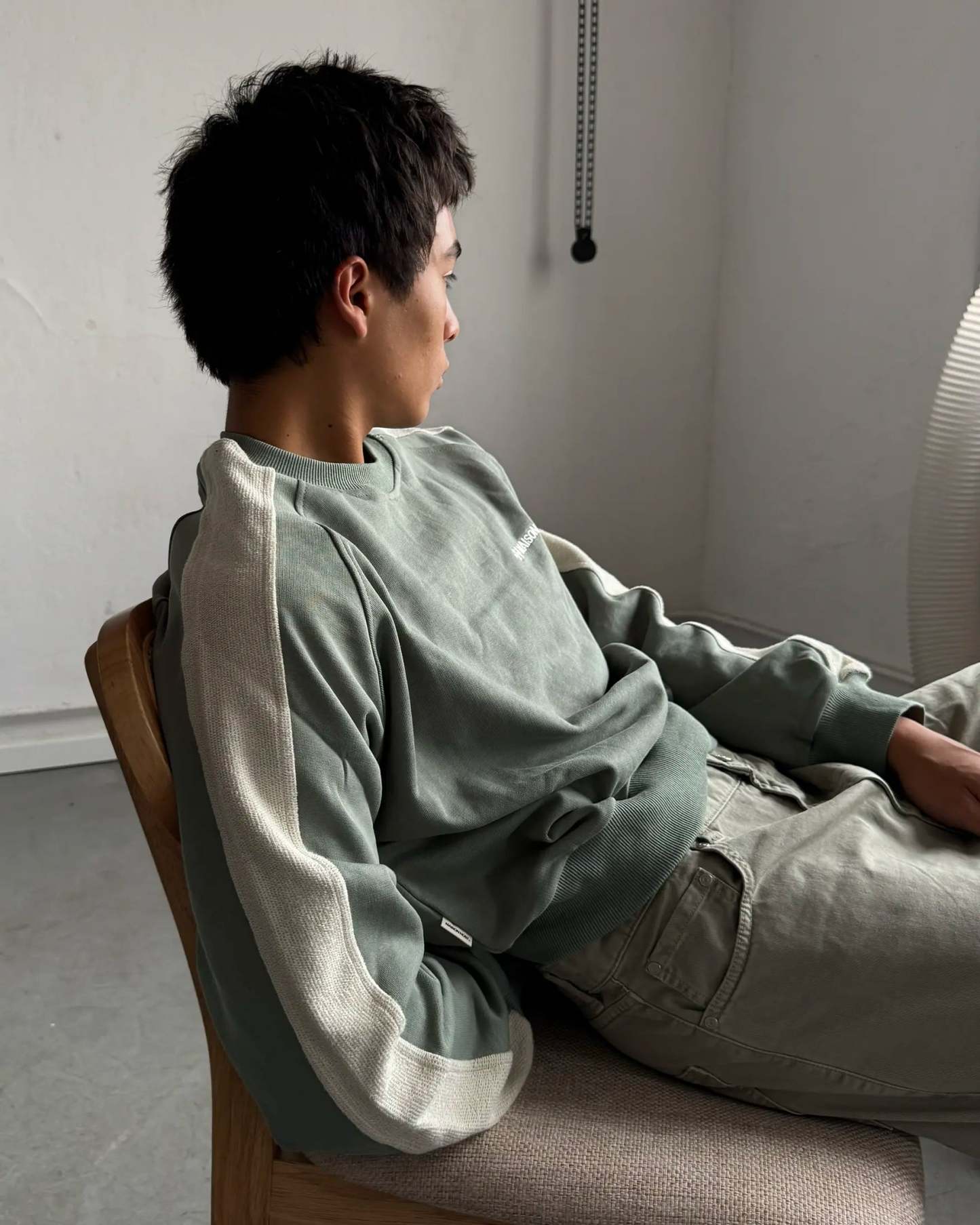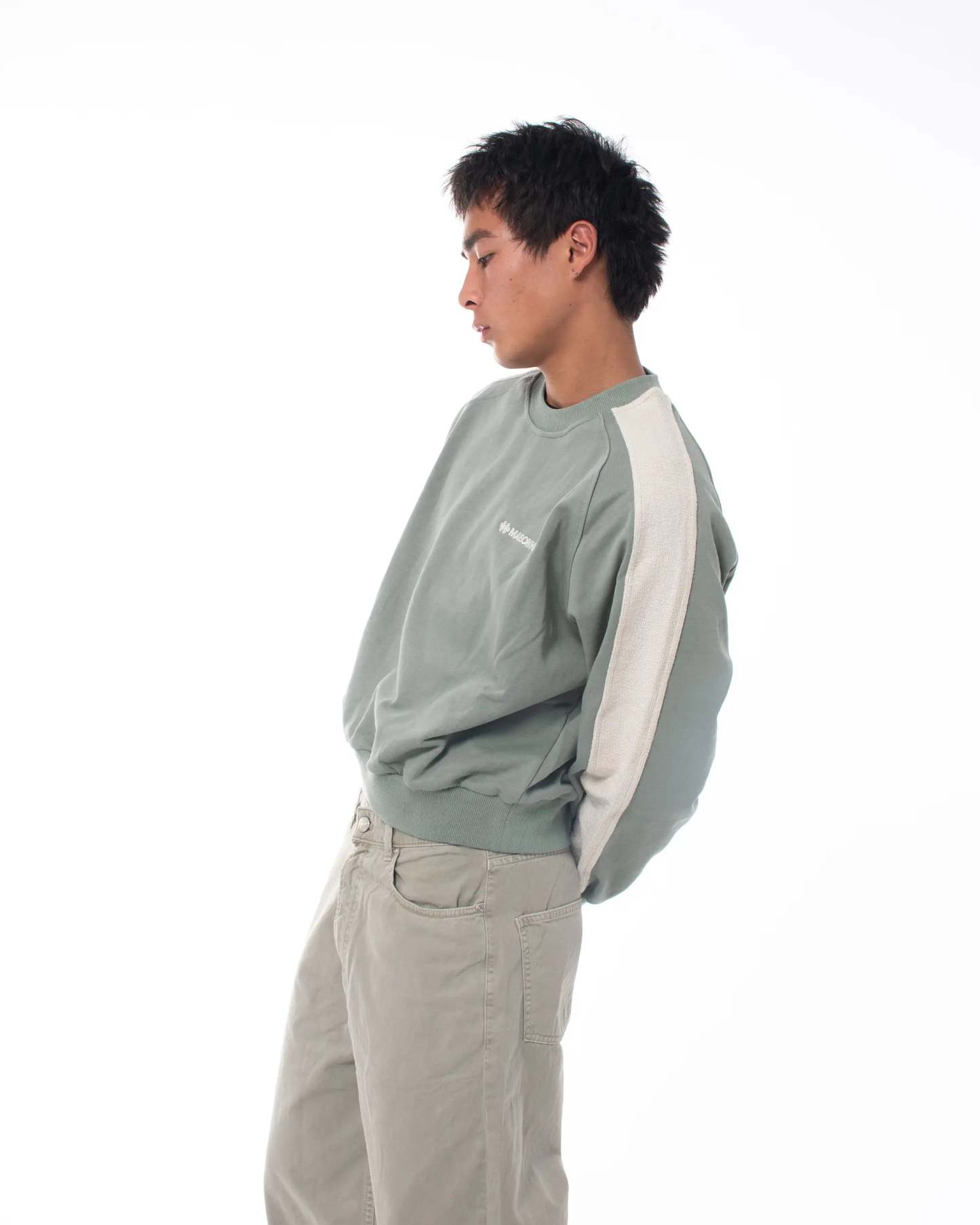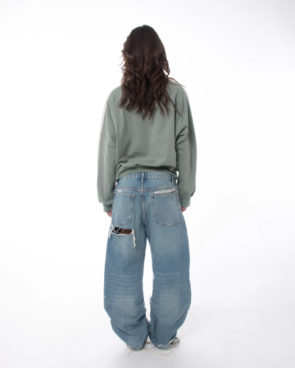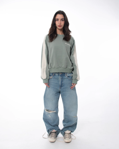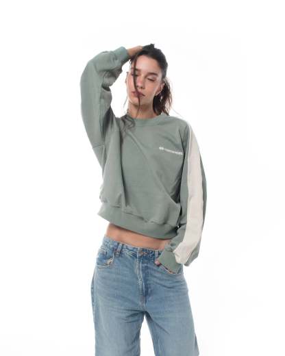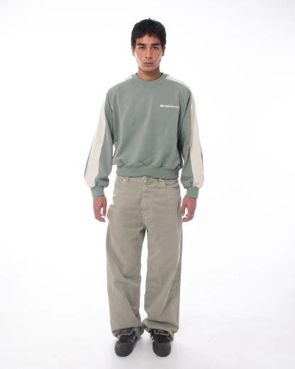 This cropped-fit crewneck redefines structure and texture through a distinctive reverse-band construction. The outer sleeve panels expose the French Terry side of the fabric, creating a contrast in tone and texture that gives the piece its name.