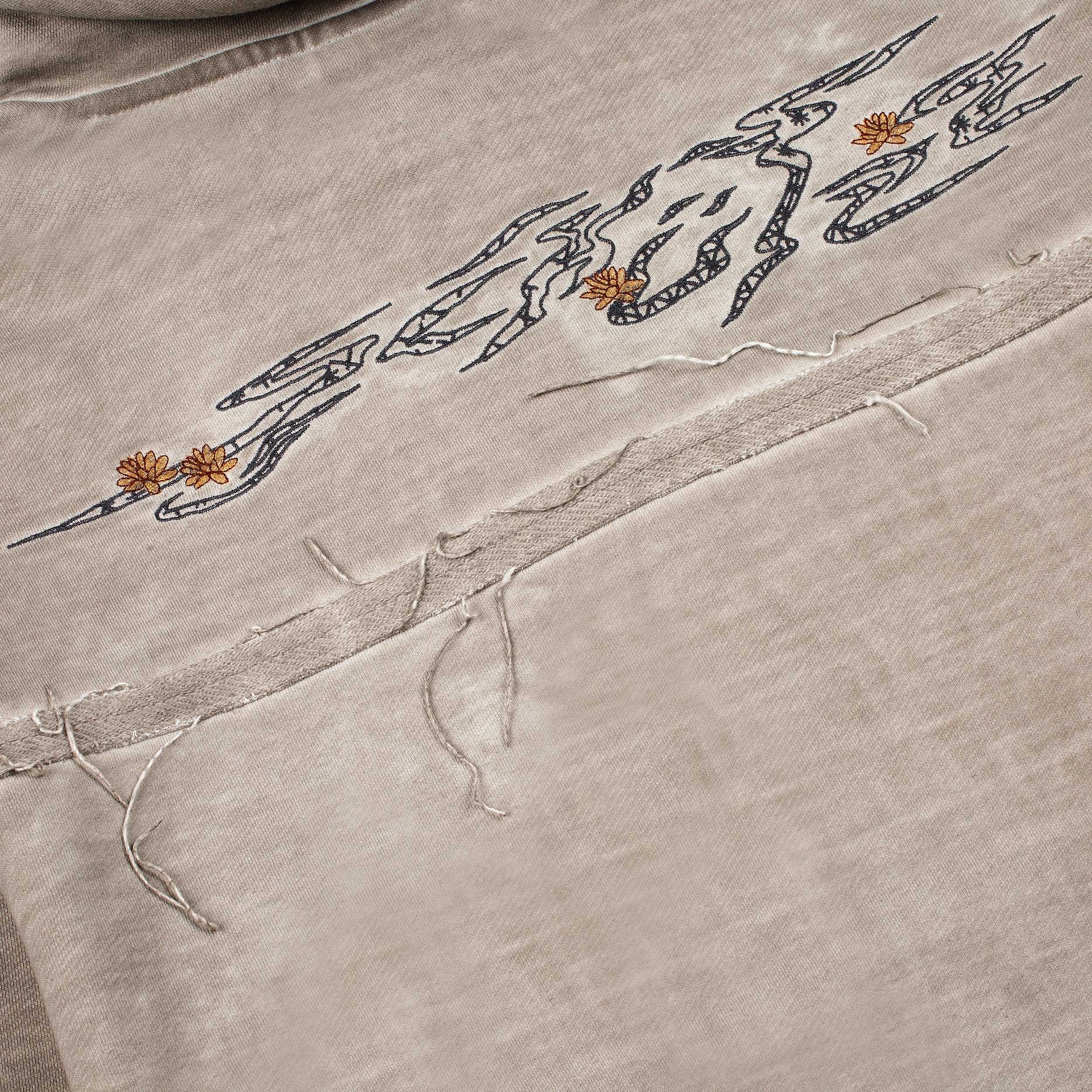 480gsm / 100% preshrunk cotton / embroidery on front and back / oil wash / fits true to size