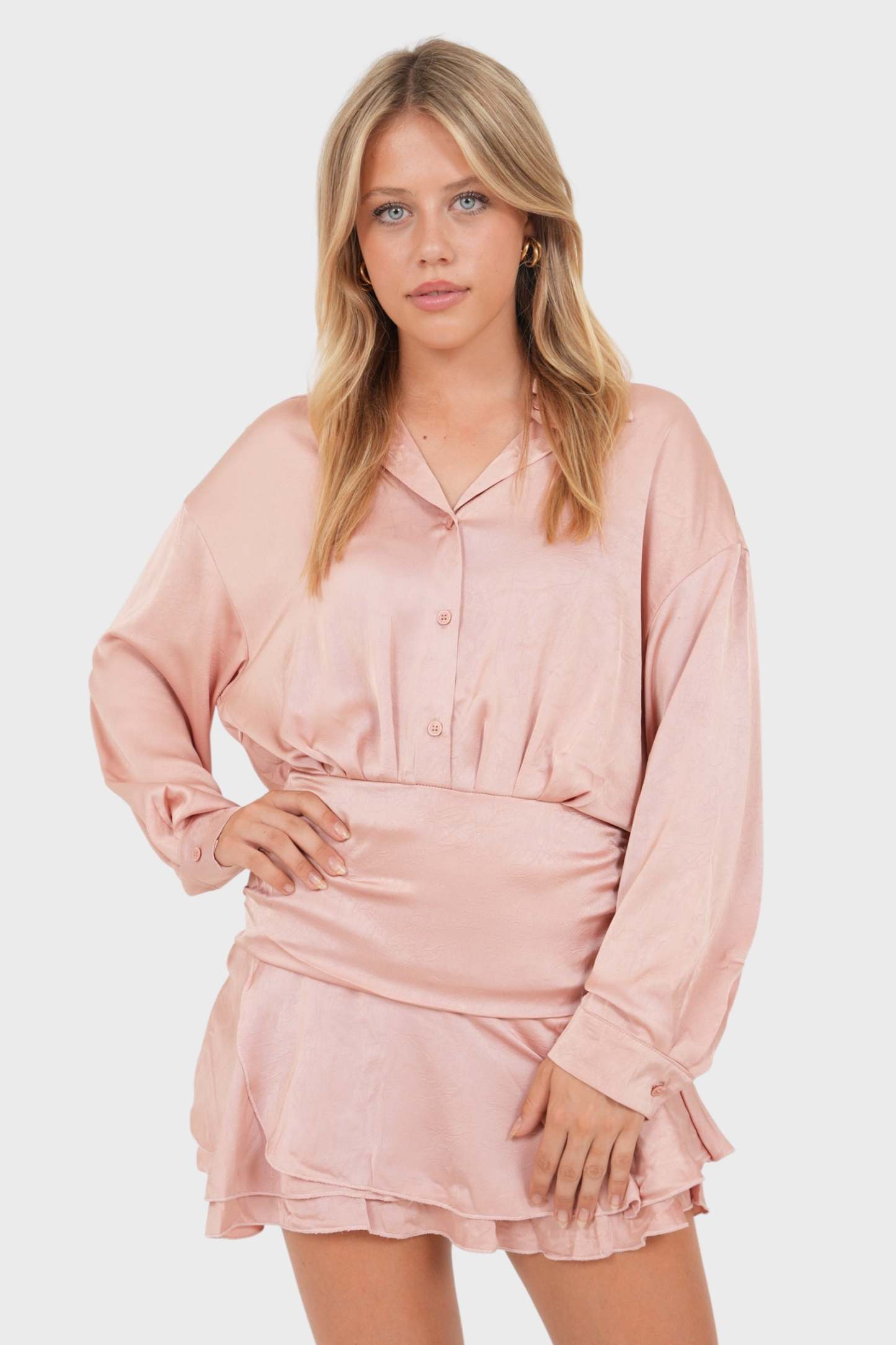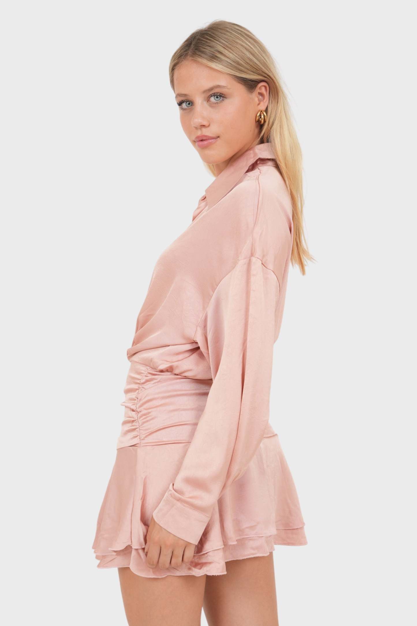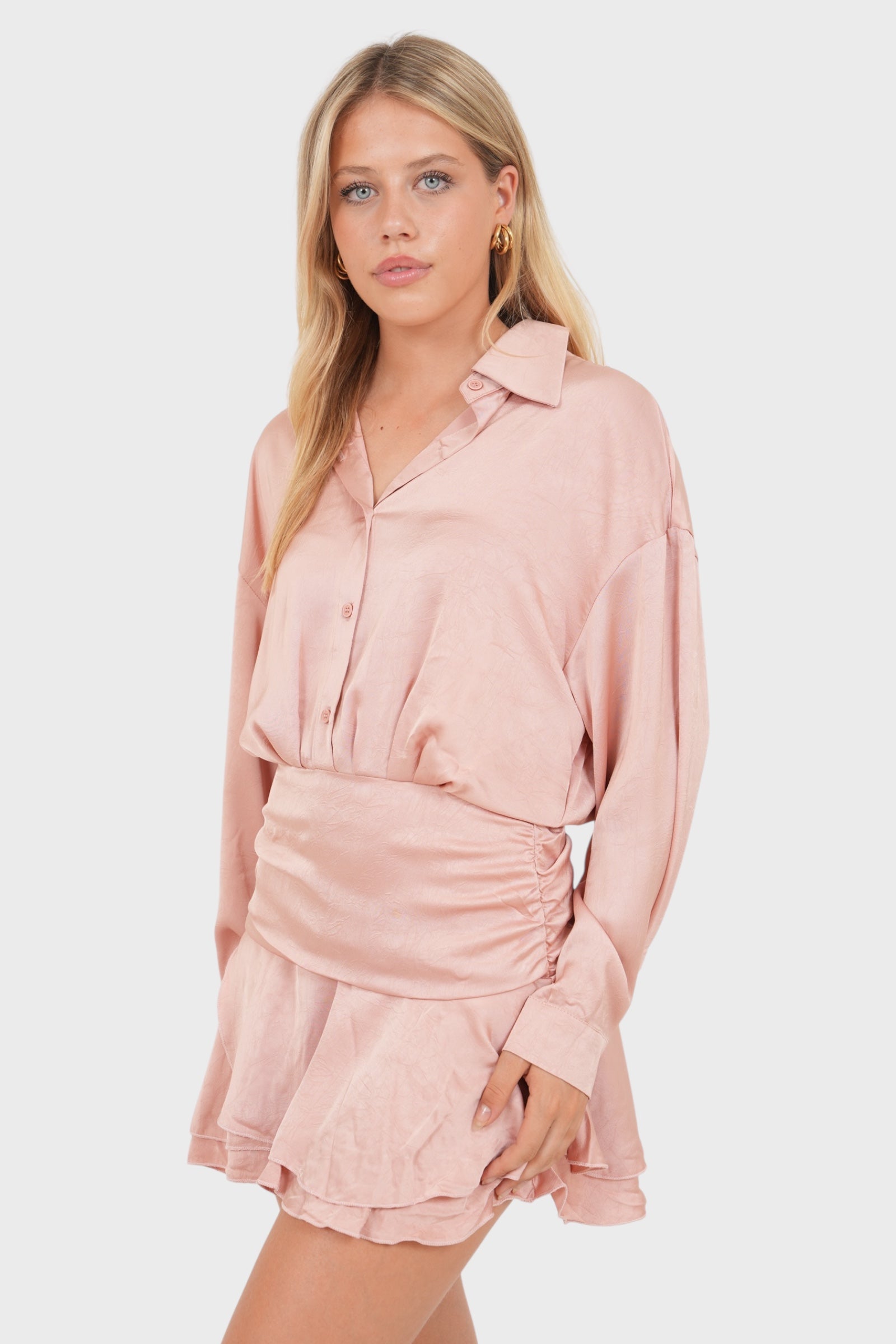 This pink satin dress is a dream for any occasion. It's made of a gorgeous satin fabric in a lovely pink. Perfect for a party! 💕