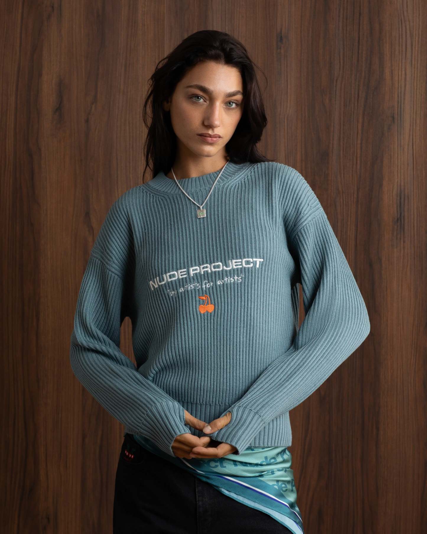 Wavy Knit Sweater Blue