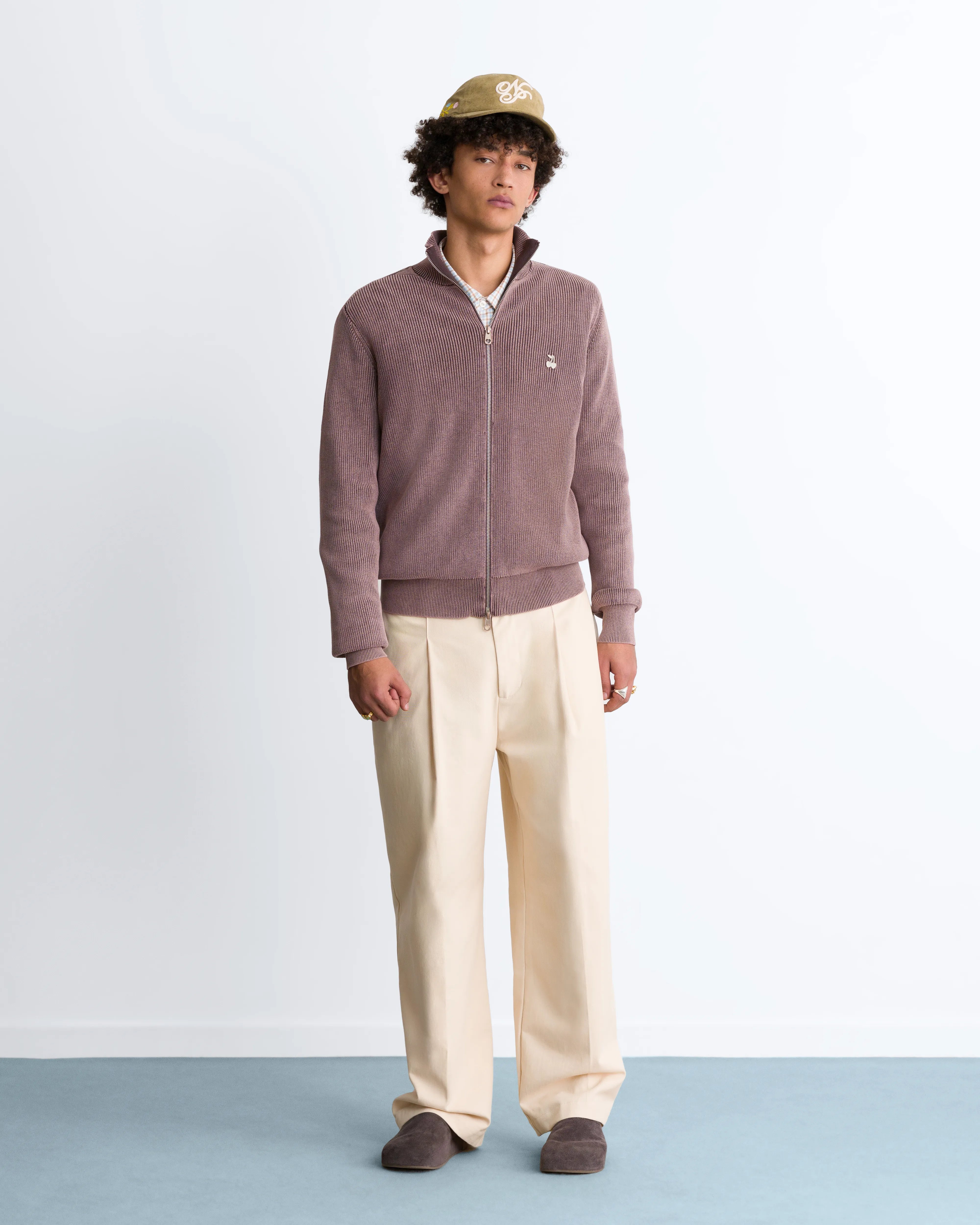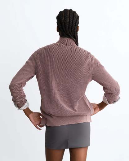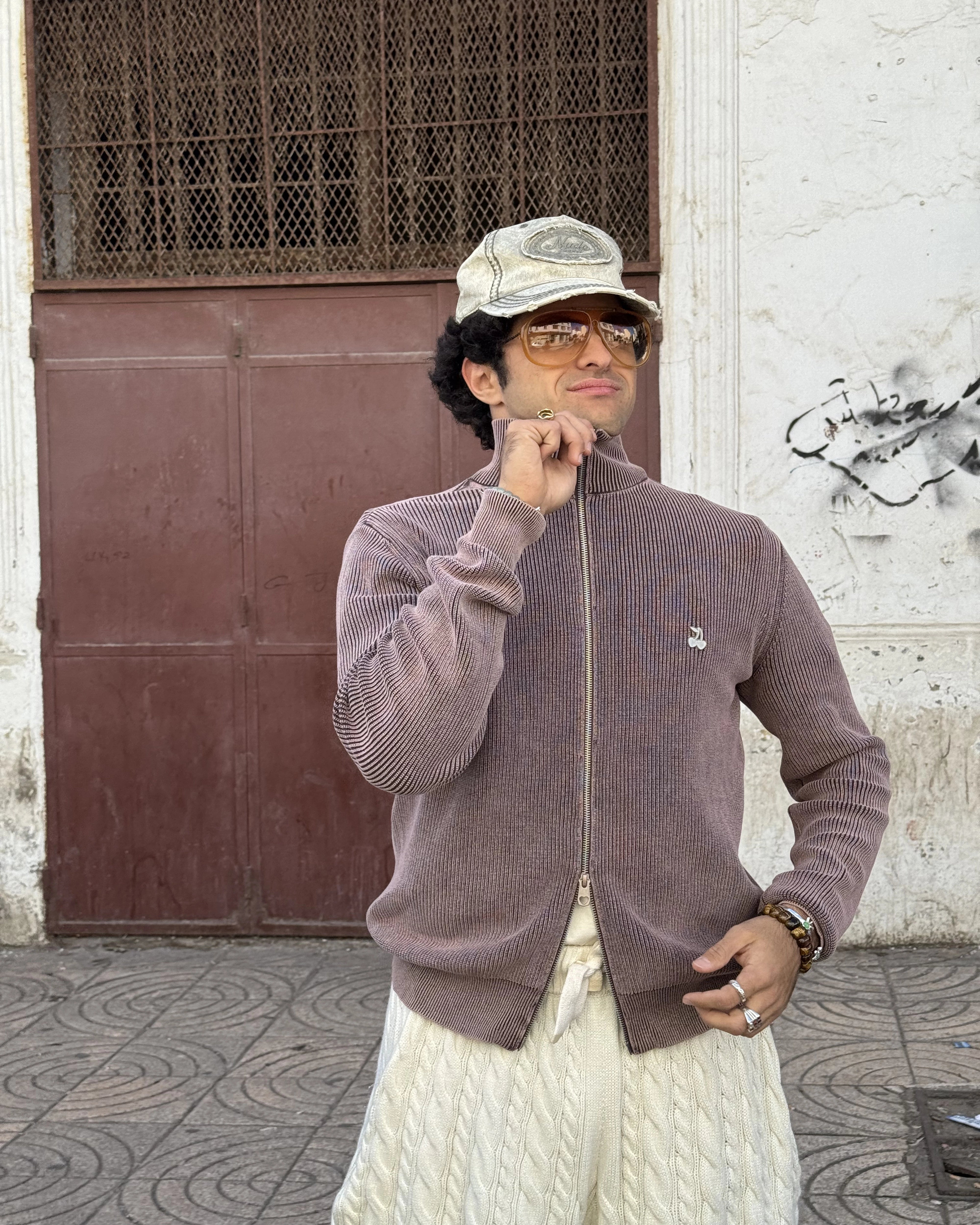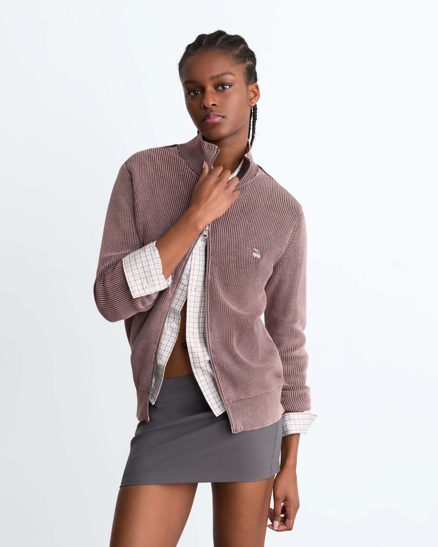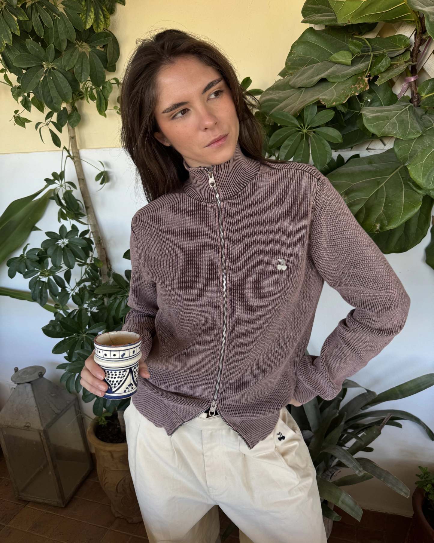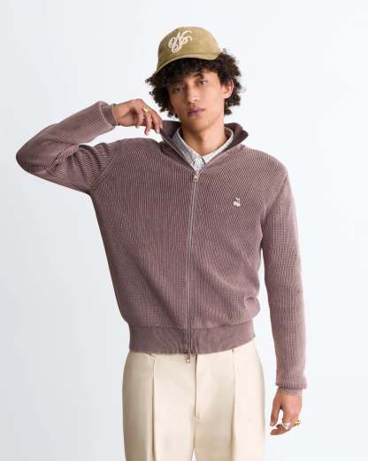 Shady Knit Zip-Up Cardigan Brown