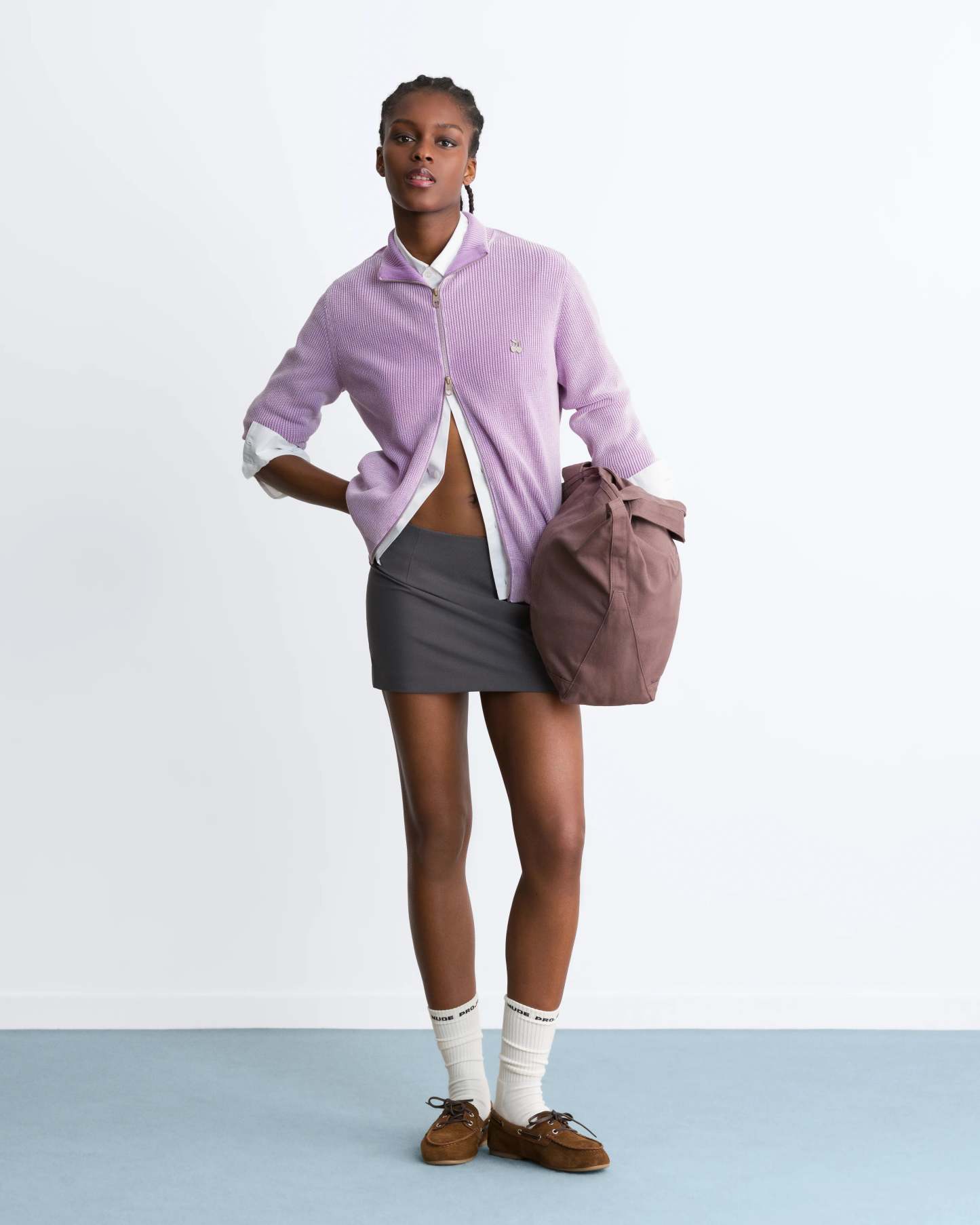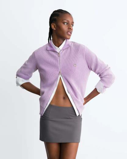 Shady Knit Zip-Up Cardigan Purple