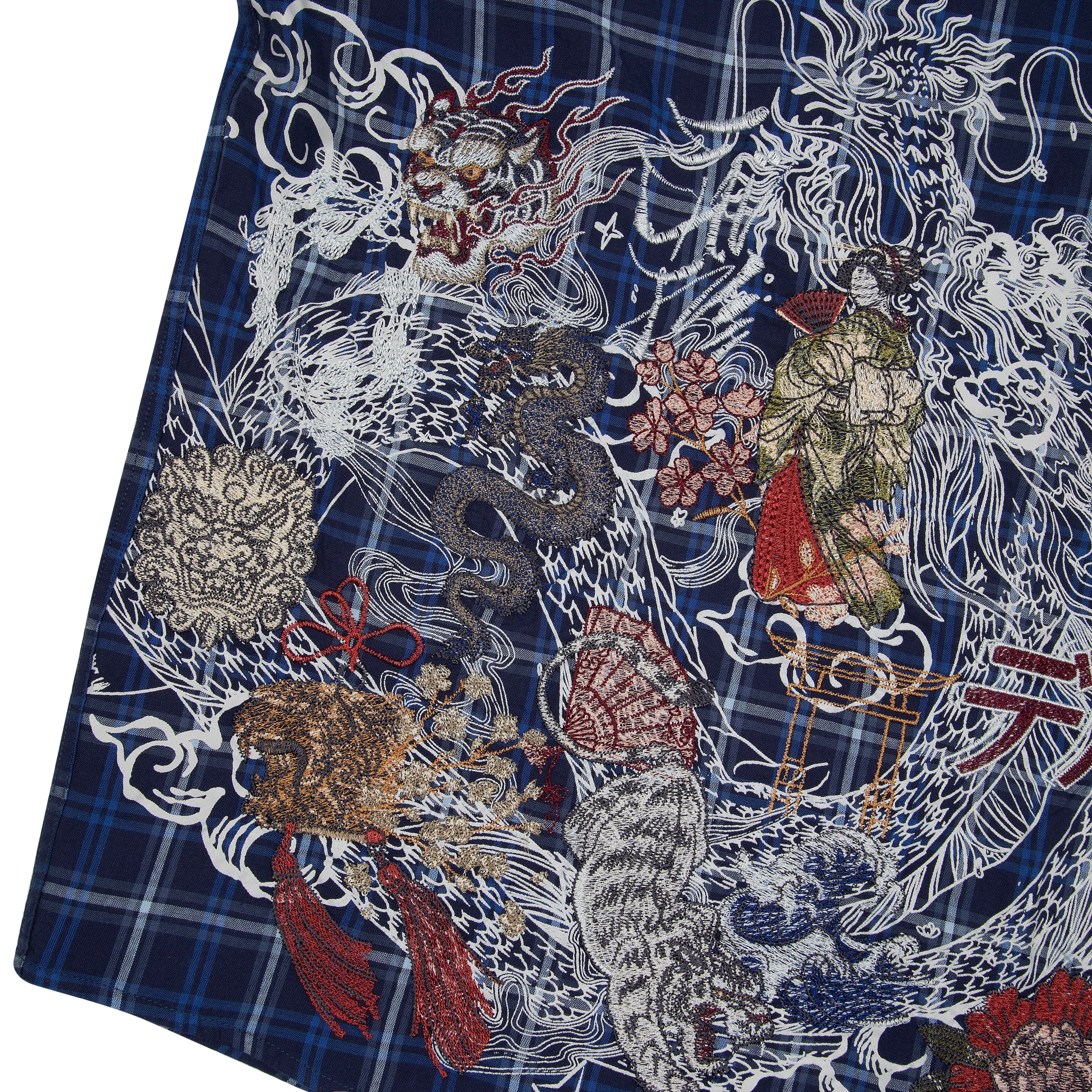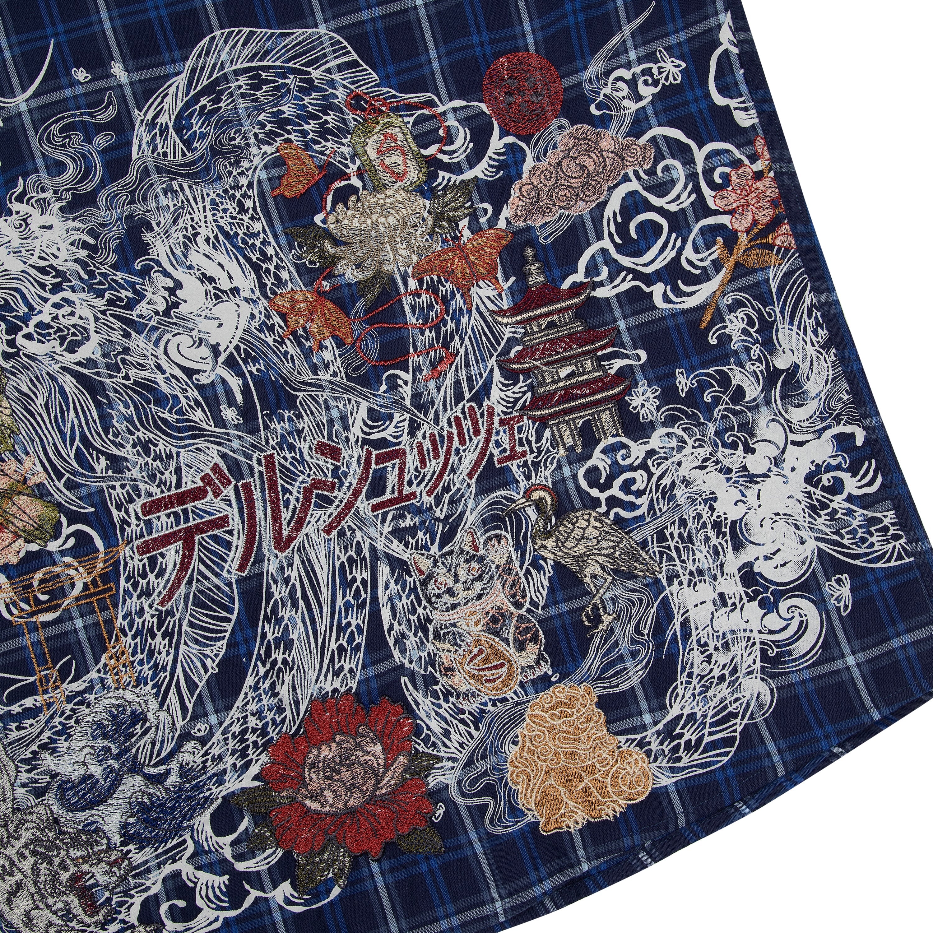 plaid popeline fabric / 100% cotton / waffle sleeves (100% cotton) / embroidery on back / custom buttons / curved hem / relaxed fit / fits true to size